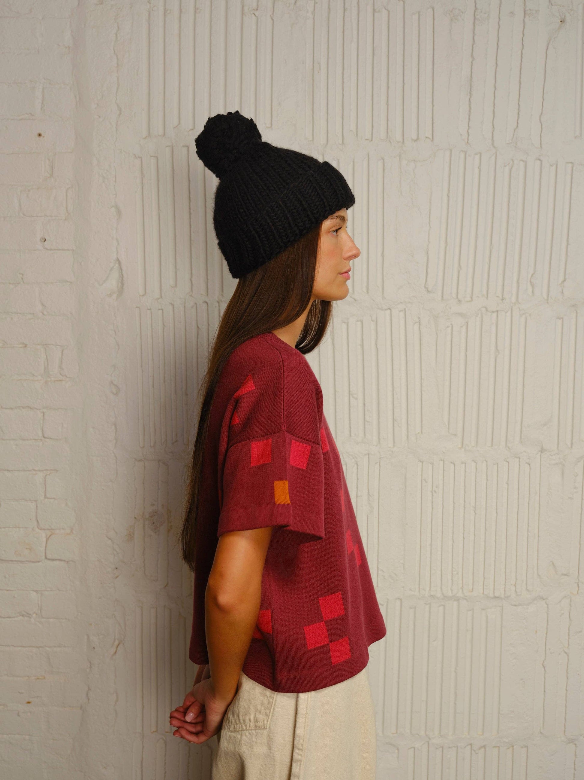 A statement in structure. The Albers Tee features an asymmetric jacquard knit in deadstock Pima cotton, blending artful design with everyday ease.