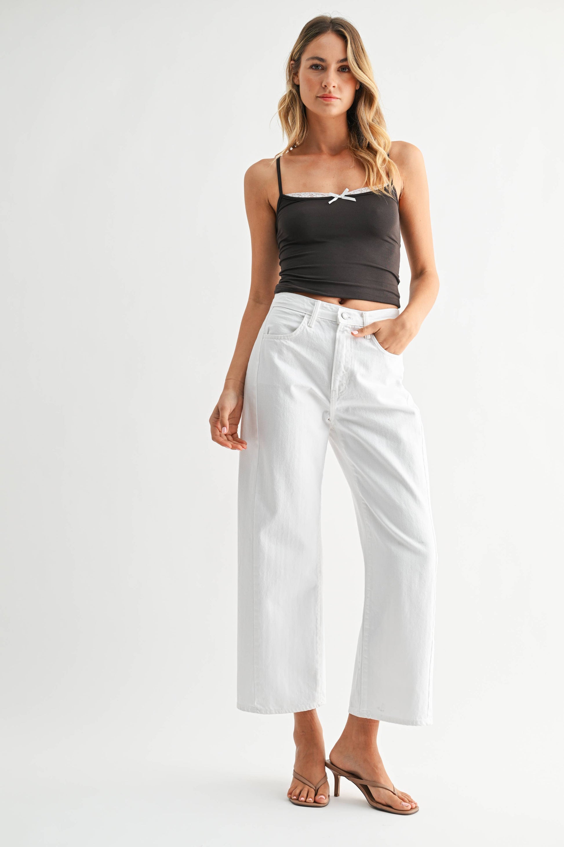 These jeans showcase a trendy barrel silhouette that’s designed to turn heads while providing a flattering fit. Made from high-quality non-stretch denim, they offer a structured feel that enhances your shape and gives you all-day comfort. The distinctive twist detail adds a fun and unique touch, making these jeans a standout choice for any outfit.