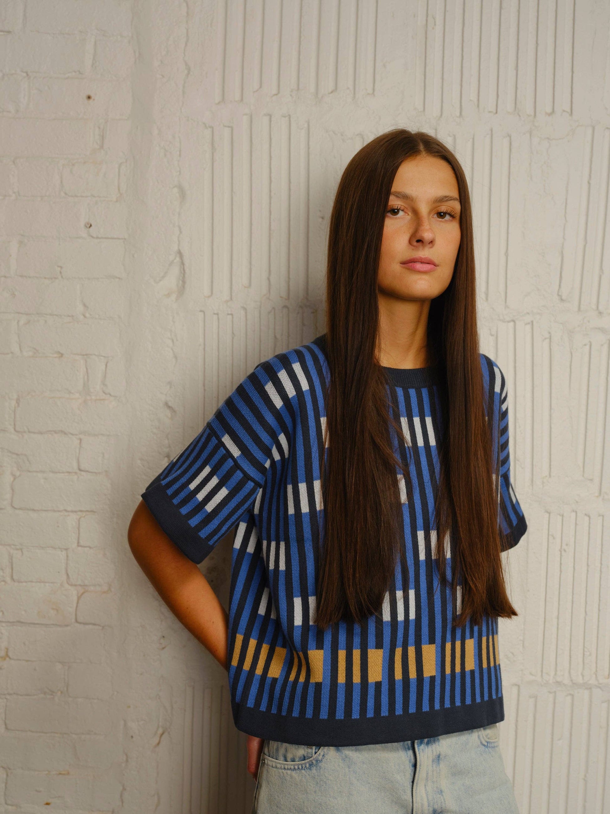 Our signature Bauhaus Tee—crafted from deadstock Pima cotton and designed with a bold jacquard knit. Lightweight, breathable, and easy to style, it’s a wardrobe essential.