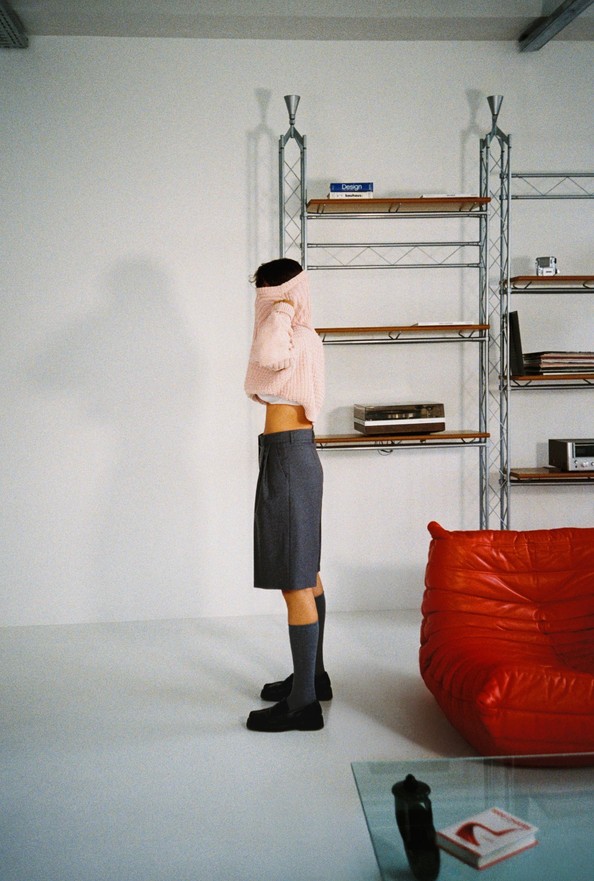"Delčia" means "half-moon" in Lithuanian, and her half-and-half stitching was inspired by our Baltic pagan roots and the changing cycles of the moon. In pagan culture, people are big believers in the moon's energy and staying in touch with it. The Delčia organic cotton sweater embodies that perfect balance between the two extremes of the young moon and the full moon. Additionally, the sweater is designed with an oversized width that stays consistent across all sizes, providing comfort and a relaxed silhouette for every wearer.