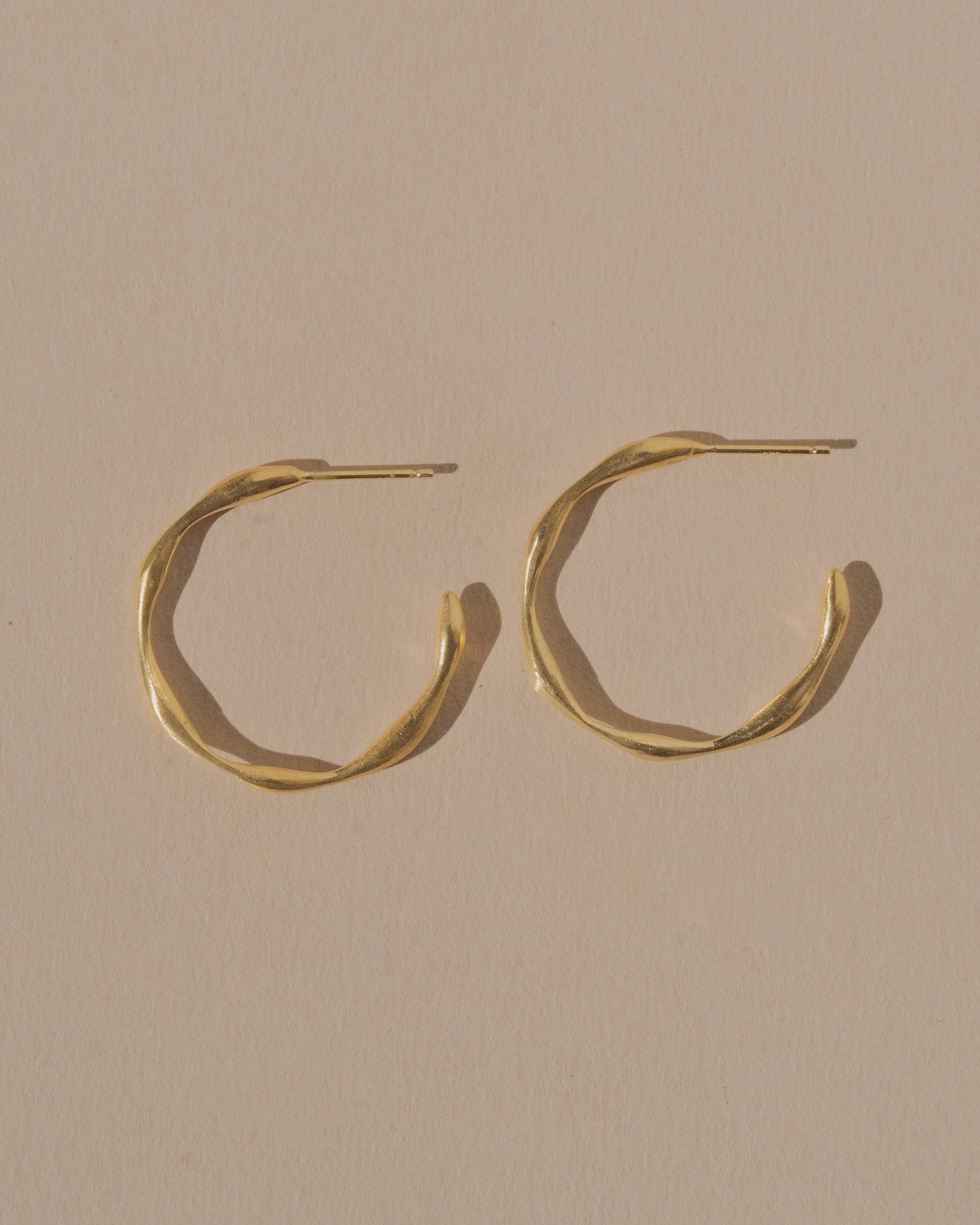 Handcrafted light weight delicate hoops, with subtle shifts of depth, giving the illusion of motion, even when still. These hoops were carved to trace a shape inspired by flow, soft waves, shifting curves ~ slight movement cast in metal. Their form is meant to feel natural, like something uncovered on a trail or shoreline, shaped by wind and water over time.