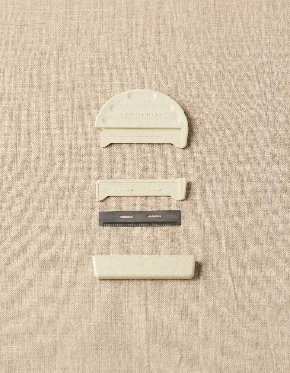Keep your garments looking fresh and pill-free with this gentle steel comb, which efficiently removes fiber fuzz buildup. Easy to hold and has a cover that clicks into place. The steel comb is replaceable/refillable when it becomes dull. The body is 100% biodegradable PLA, made from plant fiber.