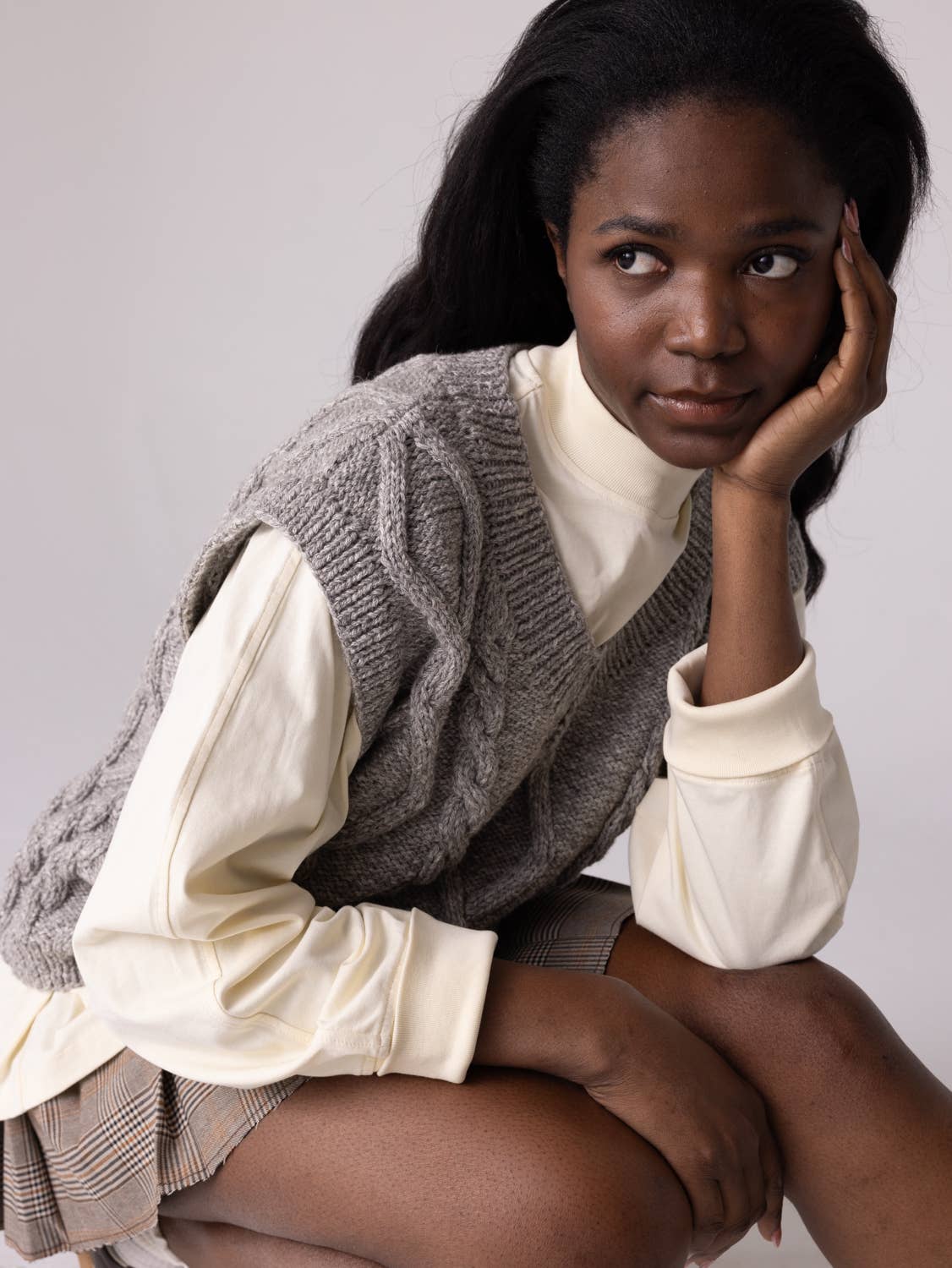 "Laimė" means "luck" in Lithuanian. The vest's cable was inspired by our Baltic roots and pagan symbols that our ancestors believed to bring good fortune. Her seriously soft yarn could have been spun by Baltic faeries (using their fav blend of baby Alpaca and Organic Pima Cotton) and her oversized fit is perfect for seasonless layering. Soft to the touch and wrinkle-resistant, look closely to spot her subtle, traditional Lithuanian patterns, spinning folk stories of mythical animals and nature. It takes 17 hours, almost four full working days, to handcraft the Laimė from start to finish.