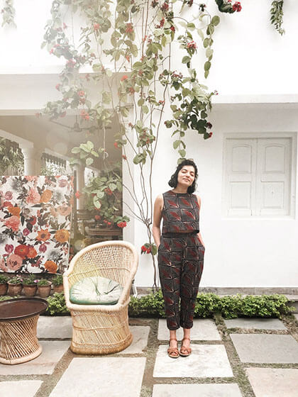 After leaving her corporate life and taking some time to travel through India, she discovered that she longed to keep the vibrant art of her culture alive by mixing historical crafting techniques with new modern patterns and silhouettes.