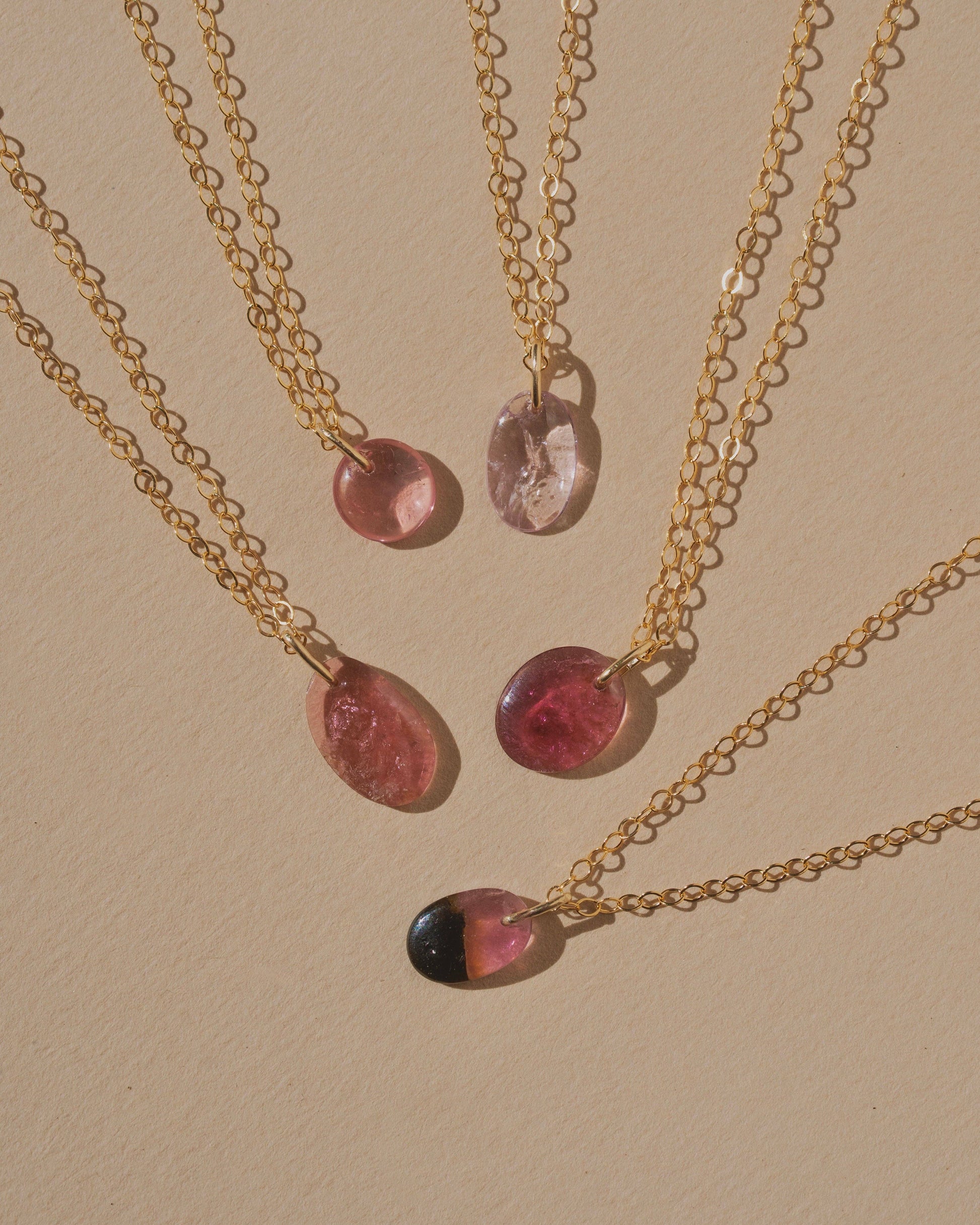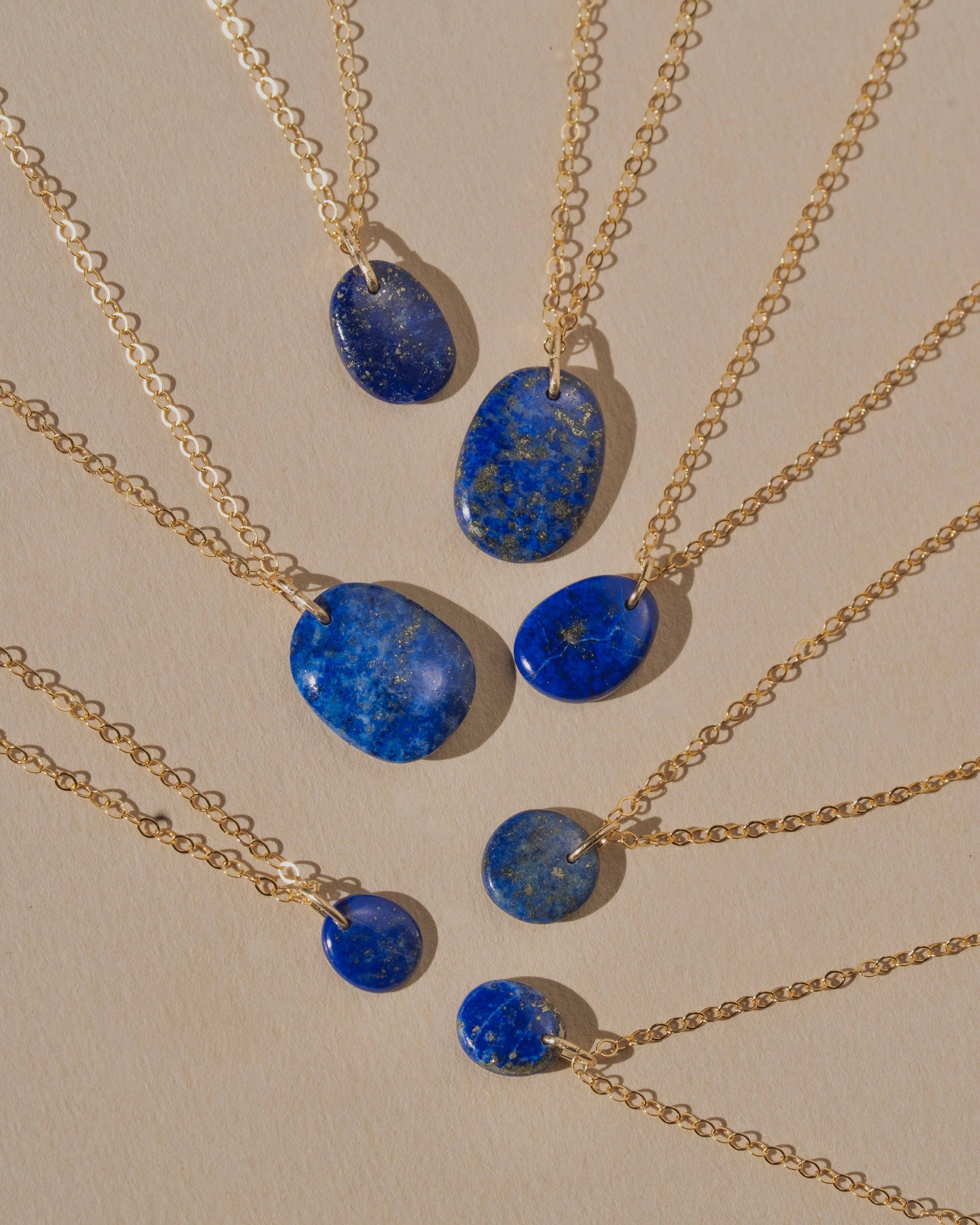 Each pendant is one of a kind. Hand carved from semi-precious gemstones formed over thousands to millions of years through natural geological processes, these stones have been prized for millennia for their beauty, symbolism, and perceived powers. Grounded, elemental, and imperfect, they have been worn as jewelry since ancient civilizations first recognized their enduring significance.