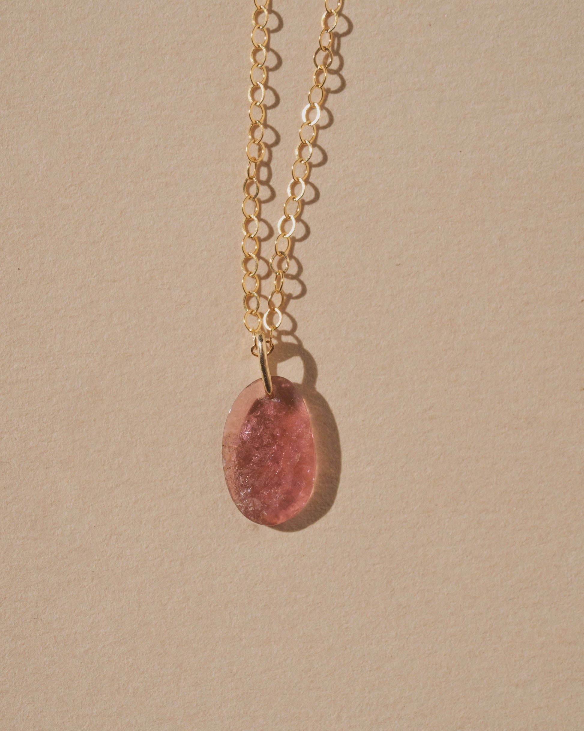 A smooth, hand cut gemstone suspended from a delicate gold cable chain. Its uneven edges and organic form give each piece its own subtle charm. Simple and minimal, yet adding a touch of color and character, it layers beautifully with other necklaces or stands alone as a small amulet of earthly elements ~ a rough gem imbued with the history, lore, and enduring power of the natural world.