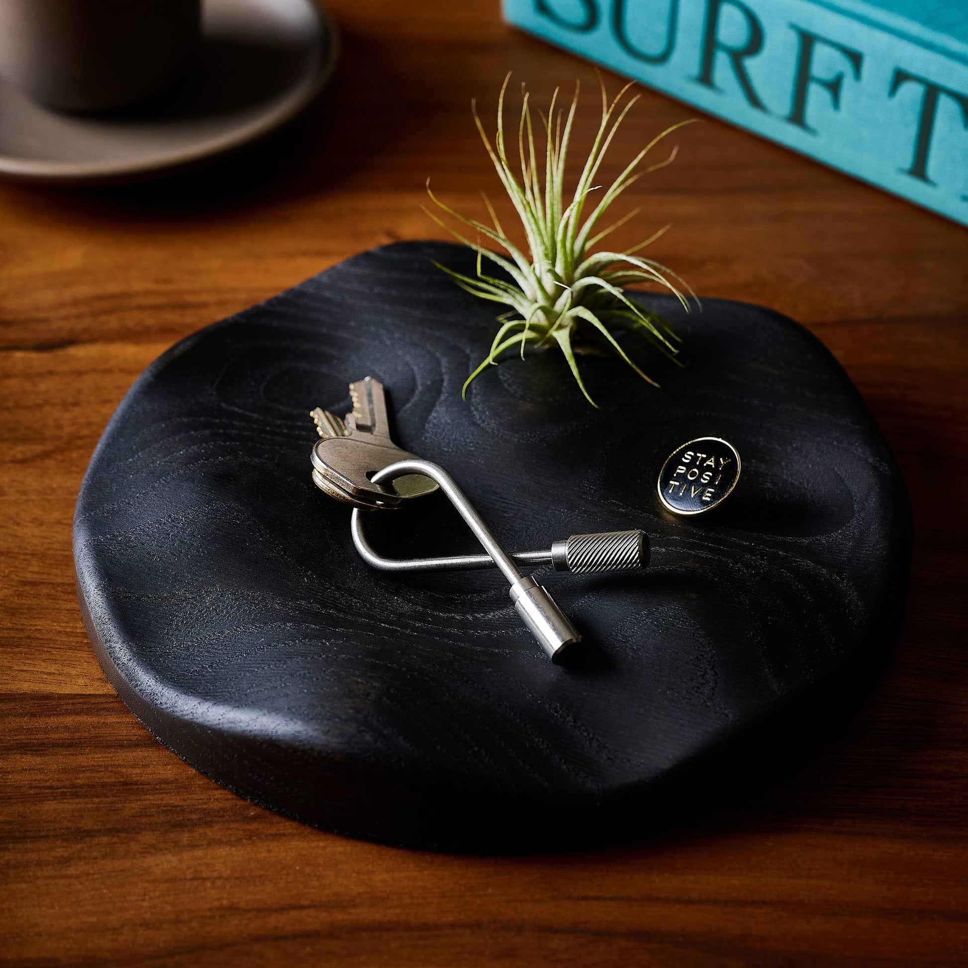 Sculptural jewelry & accessories tray. Inspired by the rolling hills of the central coast of California. Made of solid hardwood. A cushioning layer of felt provides a soft interface to your table or counter surface.